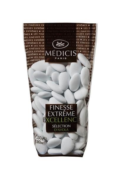 La dragée amande Avola est une dragée italienne, de la région de Syracuse Les dragées Avola sont fabriquées en France par la maison Médicis à Ferrières dans le Gâtinais depuis 1952. Il s’agit d’une dragée amande qui se caractérise par sa norme de fabrication Finesse Extrême Excellence qui lui confère une qualité inégalée. Les dragées Avola sont les meilleures dragées aux amandes avec une pointe d’amertume remarquablement équilibrée.