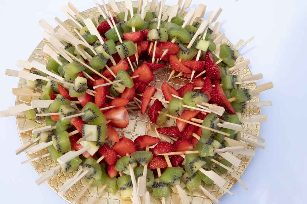 Assiette remplie de brochette de fruit fraise kiwi pour le buffet chokatime