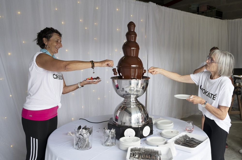 Après l’effort, le réconfort ! Nous avons installé une magnifique fontaine à chocolat accompagnée d’un grand buffet de brochettes de fruits, marshmallows, bonbons et autres gourmandises à faire tremper. Un moment de pure indulgence pour remercier nos participants et nos partenaires.