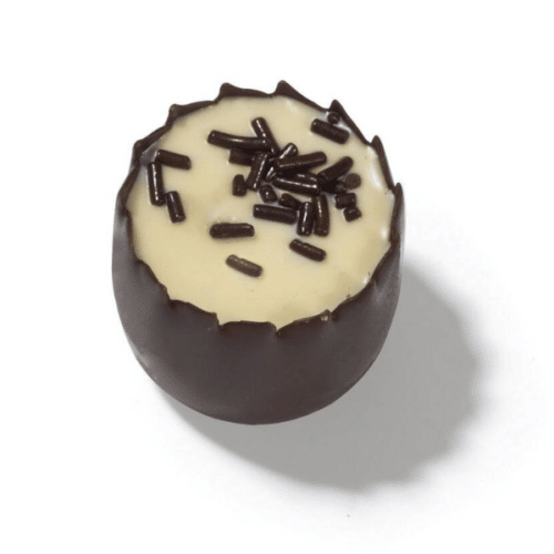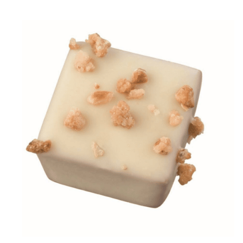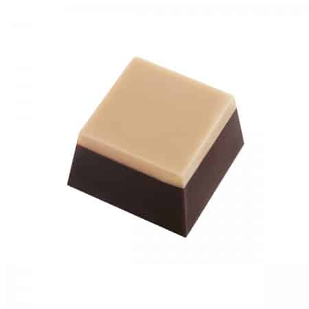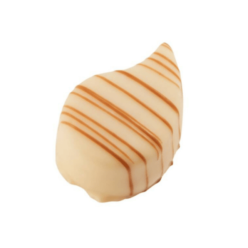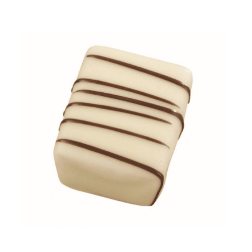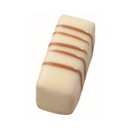 Crème à la vanille et pralinéUn chocolat blanc fourré à la crème à la vanille et au praliné. Un délice au gout de lait concentré.
