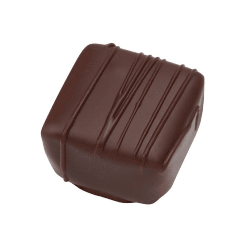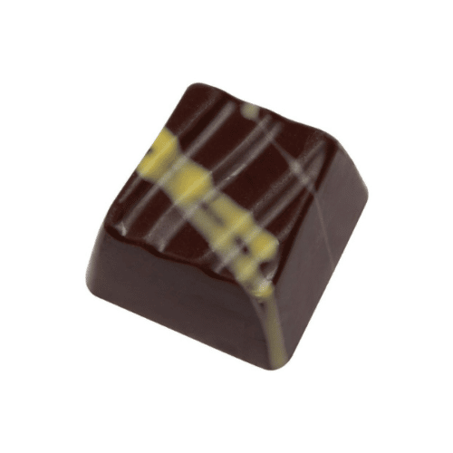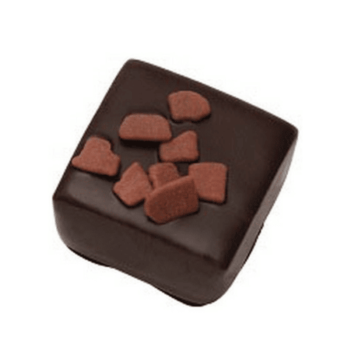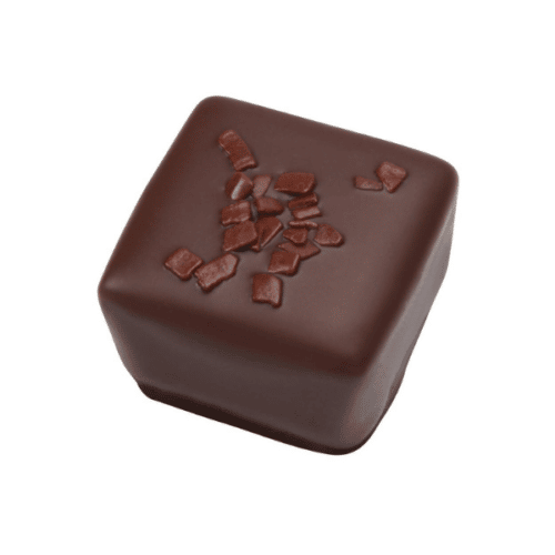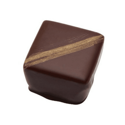 Ganache au CassisGanache au Cassis avec une couverture au chocolat au lait. Acidulé mais délicat, ce cube ne contient pas de liqueur mais contient moins de 2% d’alcool pour sa conservation.