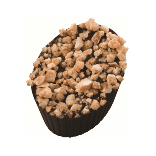 CaramelBrazilia est un délicieux chocolat noir comprenant à l’intérieur un délicieux caramel coulant et sur le dessus des éclats de noisettes.