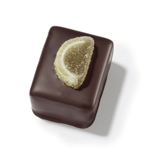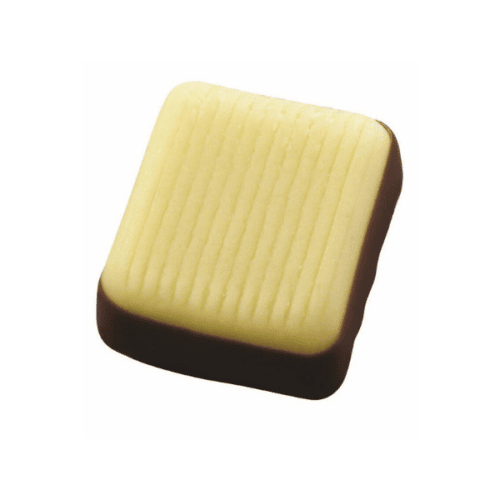 Ganache au PamplemousseGanache au Pamplemousse avec couverture au chocolat blanc. Délicieux et frais ce cube ne contient pas de liqueur mais contient moins de 2% d’alcool pour sa conservation.