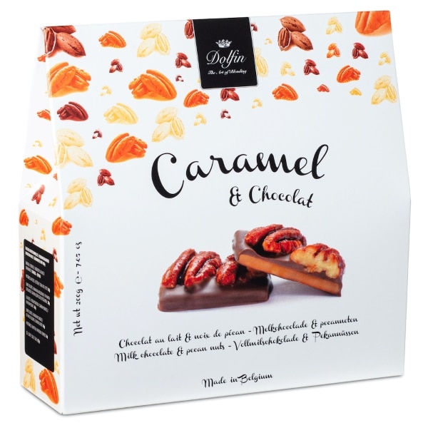 Les caramel & chocolat au lait de chez Dolfin vous propose un caramel croquant délicieusement enrobée de chocolat et parsemé de gourmandise.