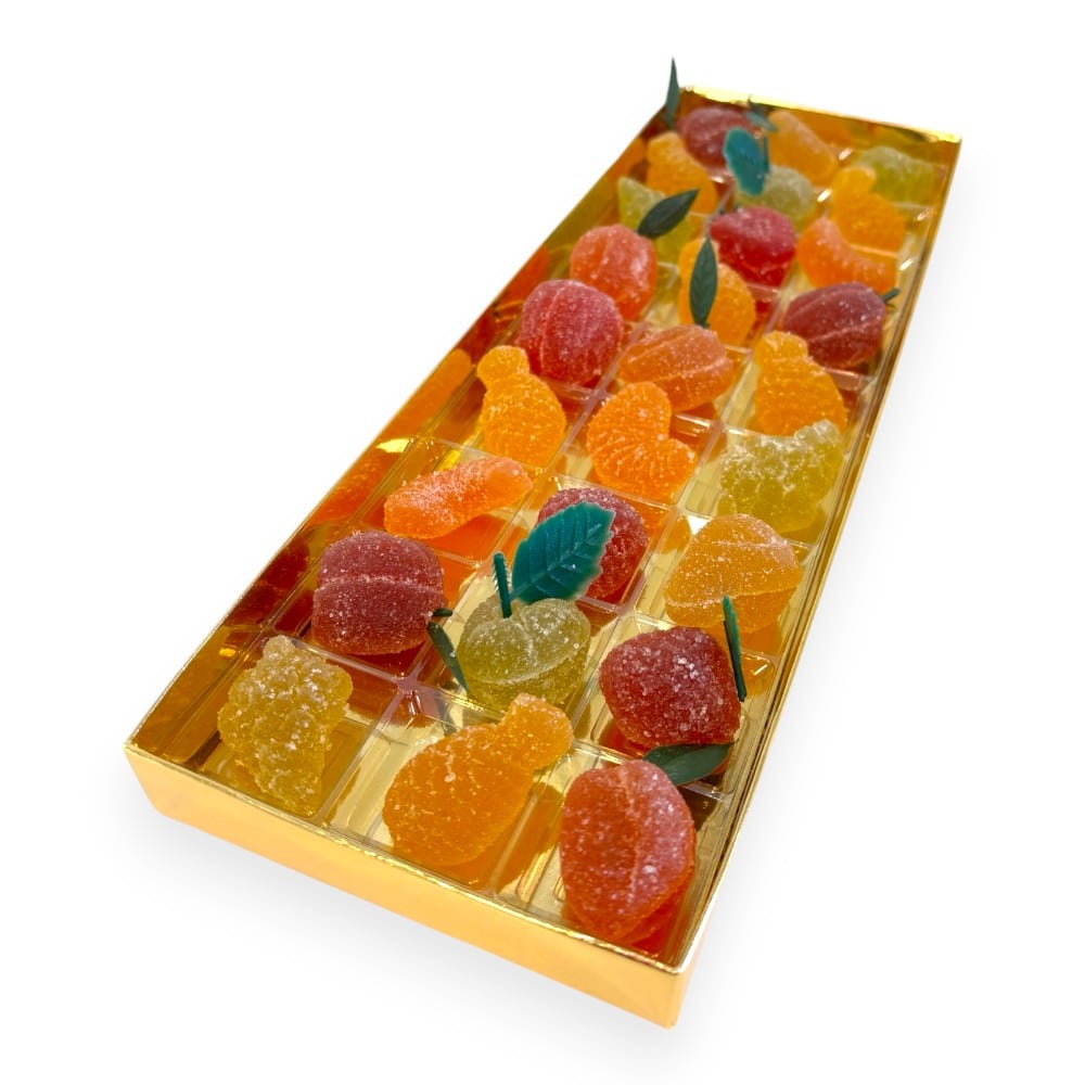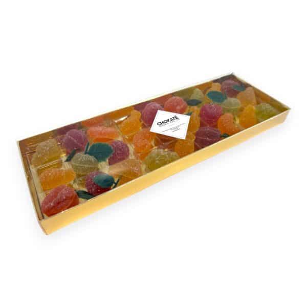 Découvrez un tourbillon de saveurs fruitées avec notre Coffret Chokaté de 27 pâtes de fruits, pour un poids net de 445g. Ce coffret gourmand est composé de 9 saveurs différentes, offrant une explosion de goût à chaque bouchée. Des arômes délicats, allant des fruits rouges aux agrumes en passant par les fruits tropicaux, pour satisfaire tous les amateurs de douceurs fruitées. Chaque pâte de fruit est soigneusement confectionnée pour préserver la fraîcheur et l’intensité des saveurs naturelles. Parfait pour les fêtes, les réceptions, ou tout simplement pour se faire plaisir, ce coffret est un cadeau coloré et gourmand qui saura enchanter petits et grands.