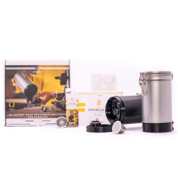 Ne cherchez pas plus loin que le coffret Caps Me ! Cette boîte innovante contient un récipient hermétique pour conserver votre café moulu préféré , trois capsules en acier inoxydable réutilisable à l’infini, que vous pouvez utiliser encore et encore. Avec la boîte Caps Me, vous pouvez facilement préparer un délicieux café fraîchement infusé chez vous en un rien de temps. Présentation d’une nouvelle façon révolutionnaire de faire du café, dîtes adieu aux opercules en aluminium et bonjour aux opercules en amidon durables, compostables et biodégradables. La box vous permet de préparer et de déguster une tasse de café fraîchement infusé en seulement 15 secondes.