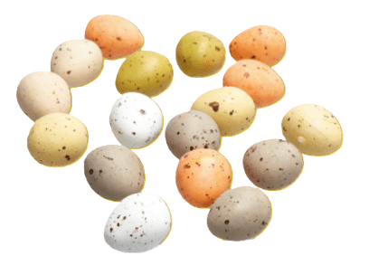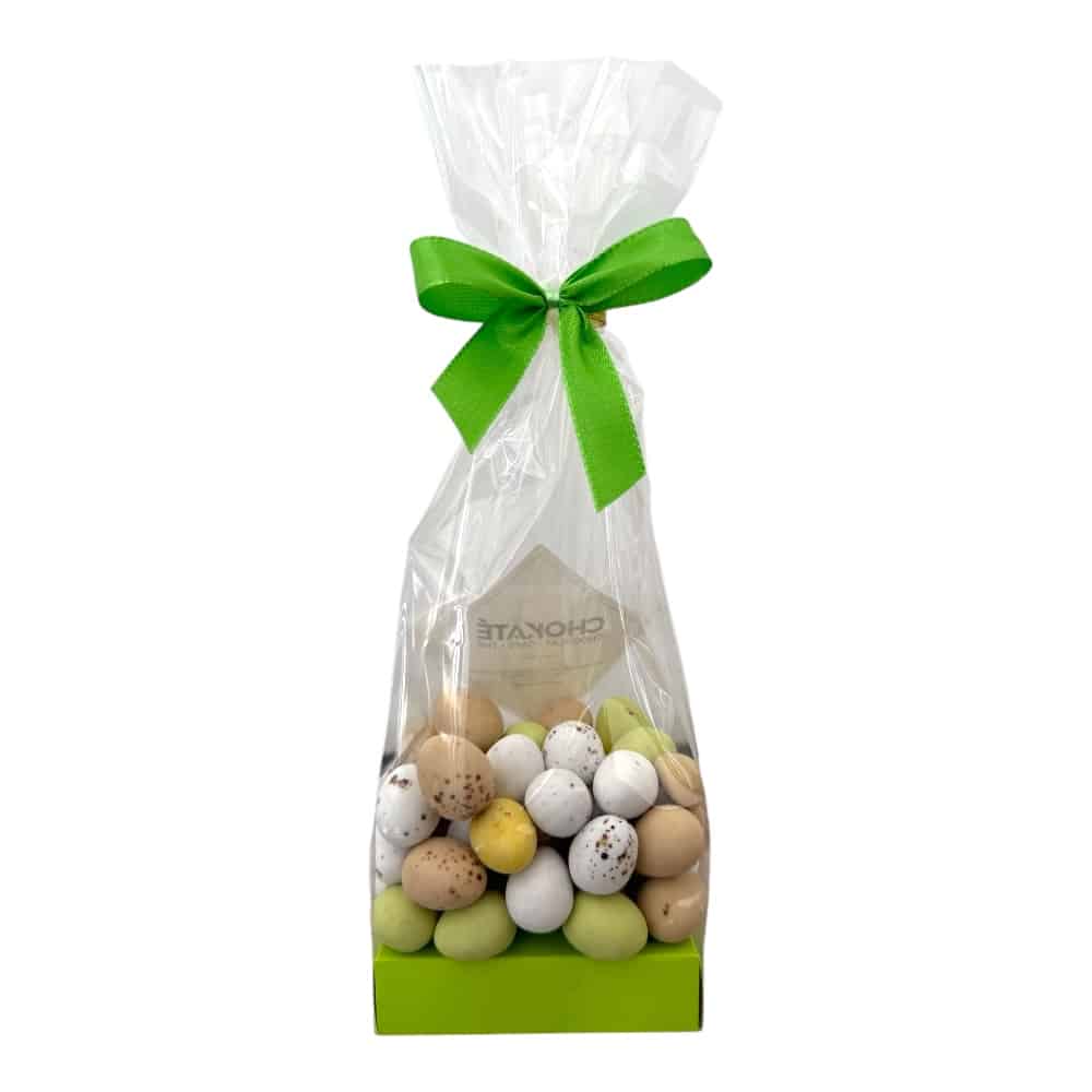 Chaque œuf est enrobé d’un délicat chocolat blanc tacheté façon œuf de mouette, avec un cœur praliné onctueux qui fond en bouche. Leur texture allie croquant et fondant pour un plaisir irrésistible à chaque bouchée.