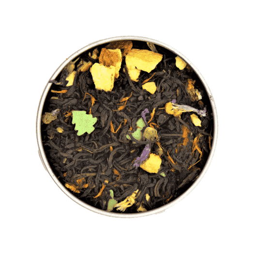 Ce thé noir est un thé noir de chine aromatisé à l’orange douce, à la mauve, à l’amande et aux graines de goji parsemé de sapins verts. Un thé noir de noël aux saveurs uniques, l’alliance de douceur de l’orange et de la mauve couplée à l’amertume de l’amande et de la goji donne à ce thé des airs de fêtes. Le meilleur thé noir pour Noël à partager en famille