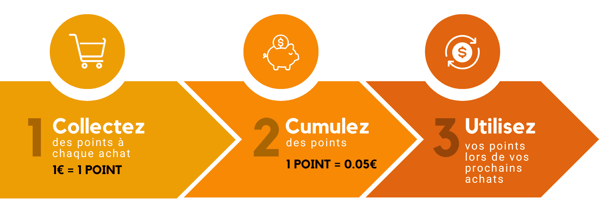 Chaque euro dépensé* (*hors frais de livraison) sur le site vous permet de gagner 1 point.